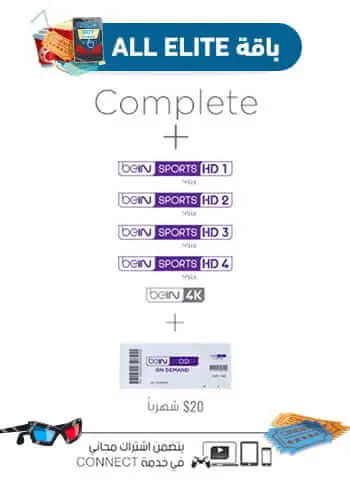 جميع القنوات الرياضيه والافلام والوثائقية والاخبارية والاطفال بالإضافة خدمة المشاهده الحية للقنوات بتطبيق bein connect + ٢٠ دولار شهريا لشراء الافلام box office + قنوات bein max لعرض البطولات العالمية والقارية